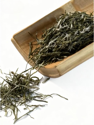 This green tea represents the finest quality from its origin region. Each bud is carefully handpicked from natural, high-elevation tea gardens—home to lush mountain mist and rich soil. Only single, tender buds are selected, and if you look closely, you’ll see the delicate white fuzz (known as hao) on each leaf tip—an unmistakable sign of freshness and quality.